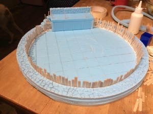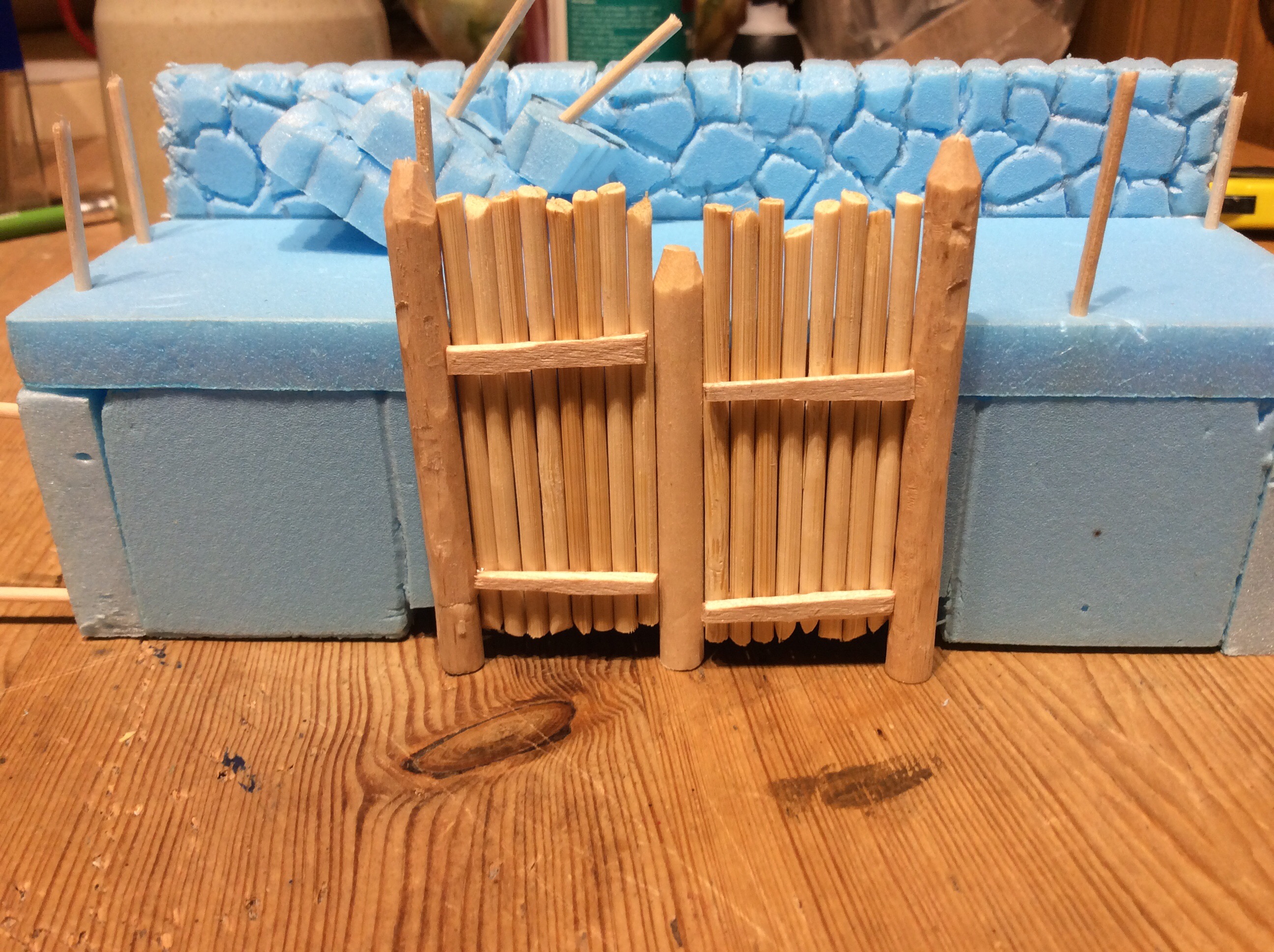 I have to wait until tomorrow to carry on as I want the palisade to be completely dry before going onto the outer wall. To be honest I will probably use either double sided tape or a hot glue gun.
