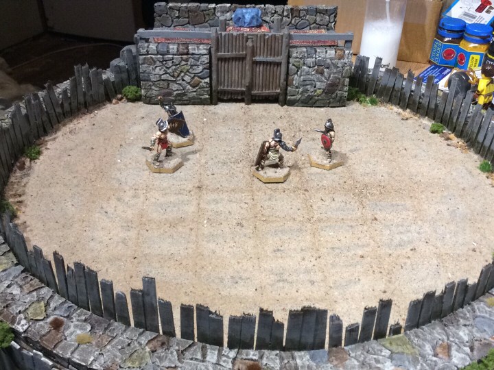 The arena and gladiators are all done. I have worked on everything solidly for the last couple of hours to get it finished.