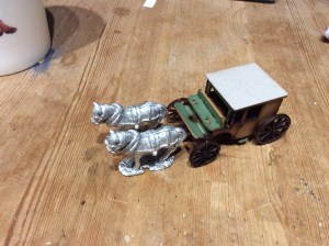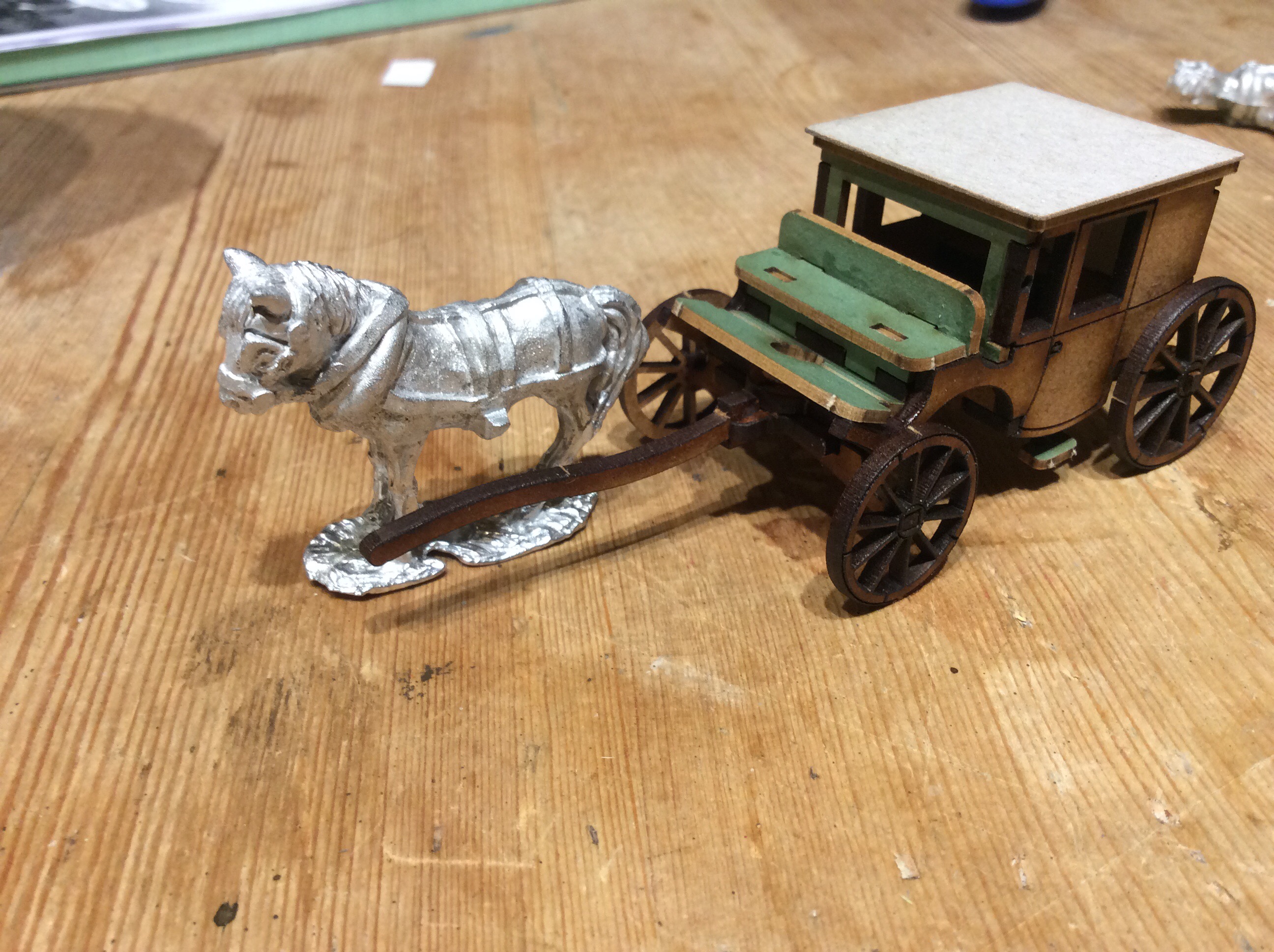 After building the turnip cart, i had a go at building the Brougham. I had a few problems with this- more user error than the actual model. There was o ne bit that looked a bit different to the instructions, but to be fair it want rocket science to work out what went where. The turnip cart was easy to make, this one really did need some kind of instructions to make sure it all went together properly.