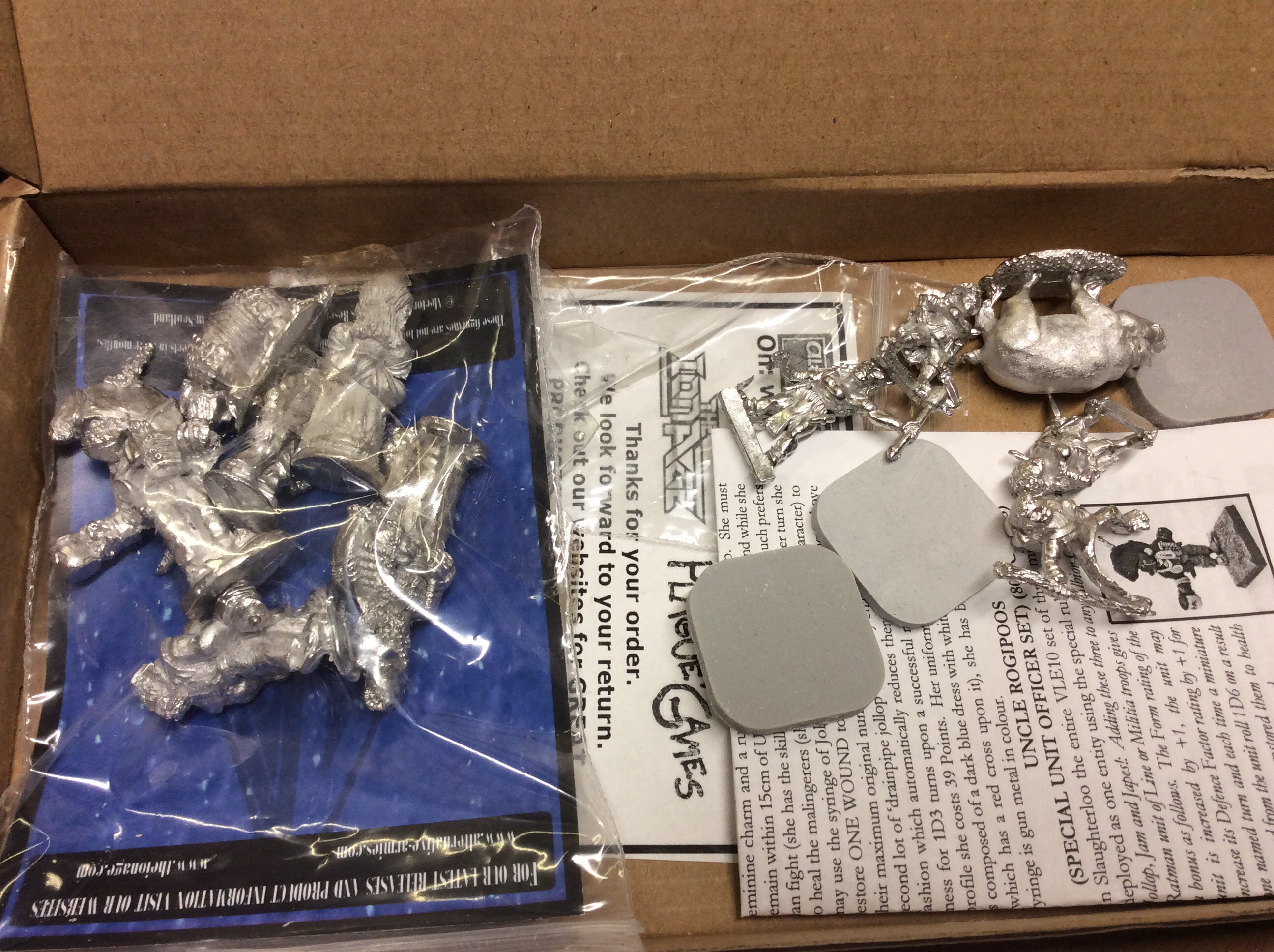 Some figures from the Lady Wintermore’s Fangs set as well as Uncle Rogipoos, Jose and Nursey. I got some more halflings for my eldest to paint up too.