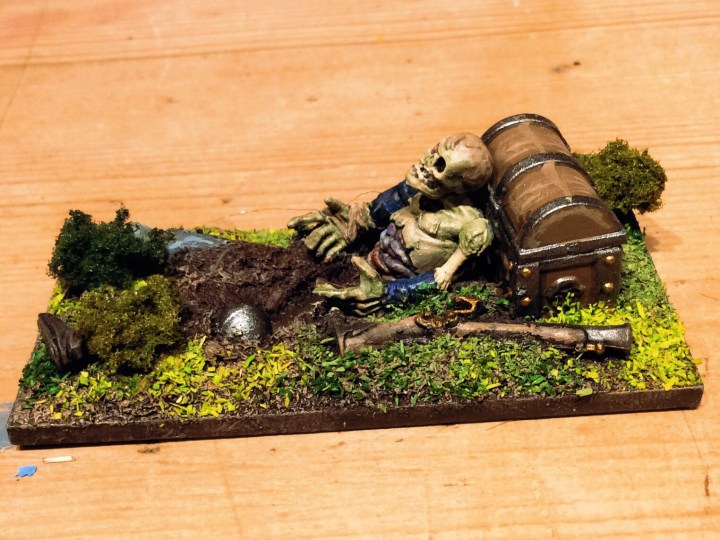 It tells a sad little tale of someone being in the wrong place at the wrong time. Poor soul was having a rest behind the chest when a cannon ball spilt him in half.