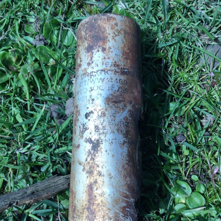 It is amazing what your kids can find in the stream. According to the ministry of defence it is a flare/smoke round that has been discharged.