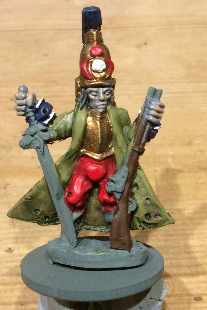 I am not one for green zombies, so I thought I would mess around with a bluish tinge to the skin. This still needs work, but I am pleased with the initial results.