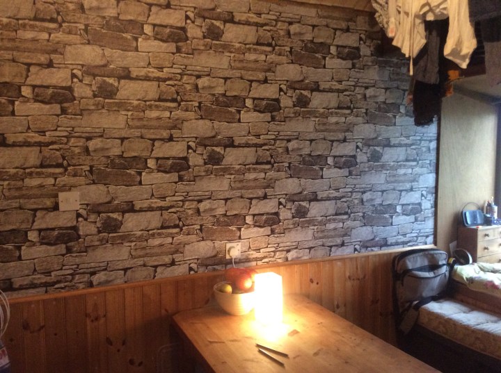 Yesterday was a bit more productive…. I repapered the kitchen.