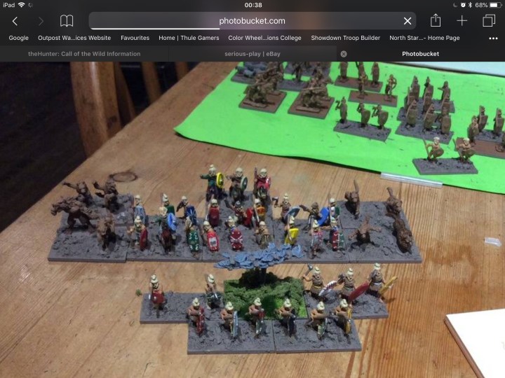I bought these originally for 7th edition.They then converted to DBM then eventually to the DBA. The werewolves are Blue Moon and were added to the original minis to make a fantasyesque force for a competition. Early Germans and werewolves kind of went together.