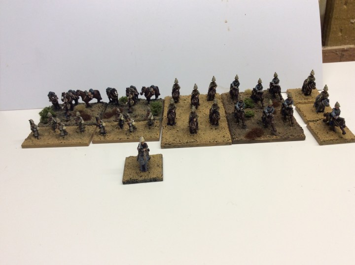 Some of these have appeared in earlier photos. I just ran them around the back of the camera to make it look like I had more 😉. I actually think I am missing some of the pack camels, they may be in the box with the Mongols.