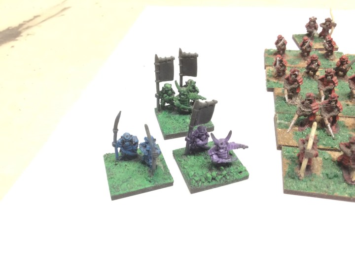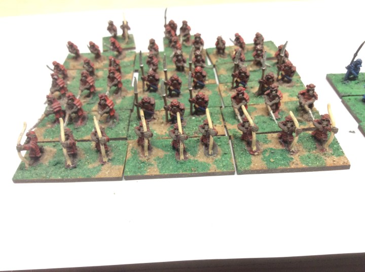 I have a whole host of the blue ones at the same stage of painting. I may have to get them finished now that I have found them. The above is pretty much the full range apart from bow armed tiger riders. They really could do with some additions. Some form of peasants as well as some monks and ninja just to name a few.