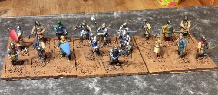 These are some of my troops for my Lion Rampant army. I know the shield was pretty much gone by Agincourt but I reckon these chaps found some and put them to good use. These Perry boxes are really good value as there was enough in the box for a whole army (only some are shown here). I also ordered some French, these however never got finished…