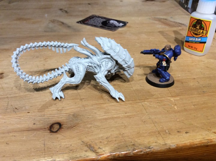 The marine is there for scale… I reckon he is shouting ‘sit!’ Now I know a fair bit about the Aliens franchise of films at the very least. The only time I have seen this one appear is in the computer game (oh and the board game). Retail cost for him is normally £30. I got him for a tenner with free postage. Too good an opportunity to miss I thought.