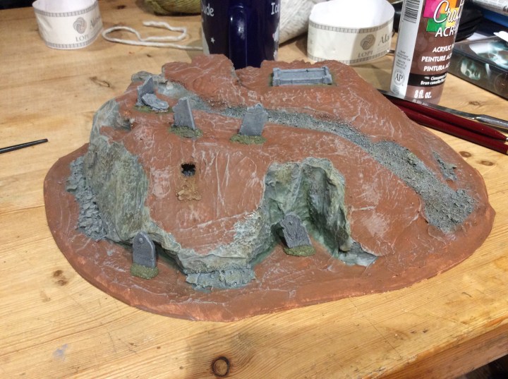 It is starting to get there, I cleaned the brush off on the brown hence the weird grey pattern. The brown will be covered in flock so I am not too concerned about it. The deep recess in the front will be wet. The idea is to get reeds and tussocks in there.