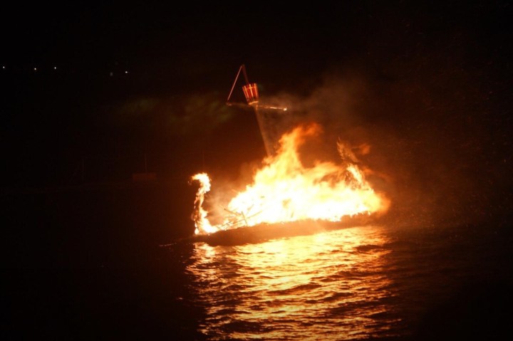 We didn’t go down to watch the boat burn on the water, but this is a photo from a couple of years ago.