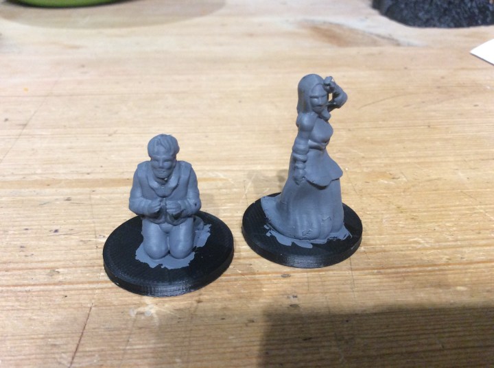 These are two of the upright civilians, the rest are having a bit of a lie down. They are still on the print bed. Now these all come without bases, so I decided to have another go at producing a base to attach the mini to. This is another great set. They only came out yesterday I think.