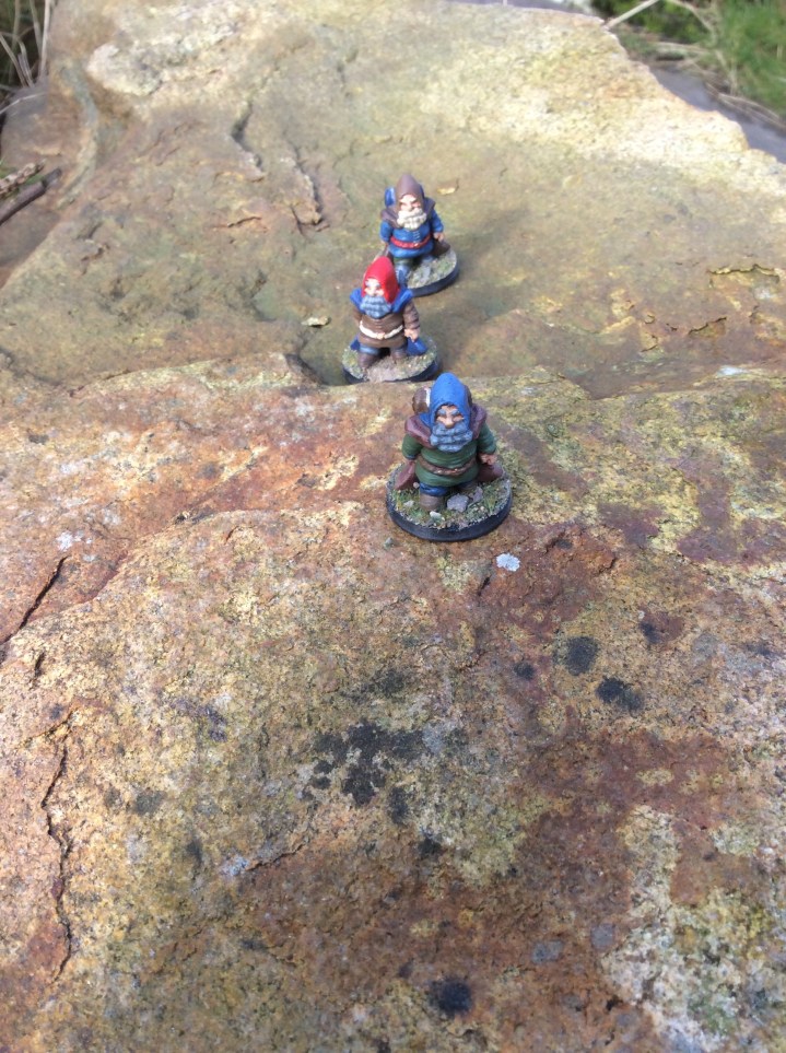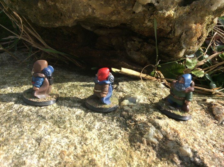 Well, I finished my first three dwarves and took them outside for a photo shoot…