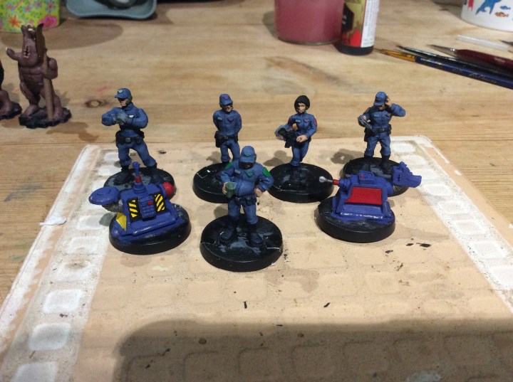 There are a couple of cock ups on them which need sorting, the blue splodge on the green cup being a case in point. The lady also has a ring that needs some paint on it. Hopefully my mate will like them.