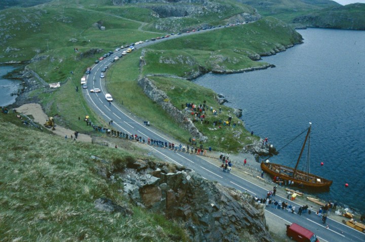 They did indeed pull a boat from the sea to the ocean. Not sure why they needed to try as in the archives there are lots of pictures and testimonies of people doing just that. http://photos.shetland-museum.org.uk/index.php?a=ViewItem&key=SXsiTiI6MTE2LCJQIjp7InZhbHVlIjoiTWF2aXMgR3JpbmQiLCJvcGVyYXRvciI6IjEiLCJmdXp6eVByZWZpeExlbmd0aCI6IjMiLCJmdXp6eU1pblNpbWlsYXJpdHkiOjAuNjUsIm1heFN1Z2dlc3Rpb25zIjoiNSIsImFsd2F5c1N1Z2dlc3QiOm51bGx9fQ&pg=54&WINID=1558564105627#ZIk6J2xfZQ8AAAFq4ajpUA/130428