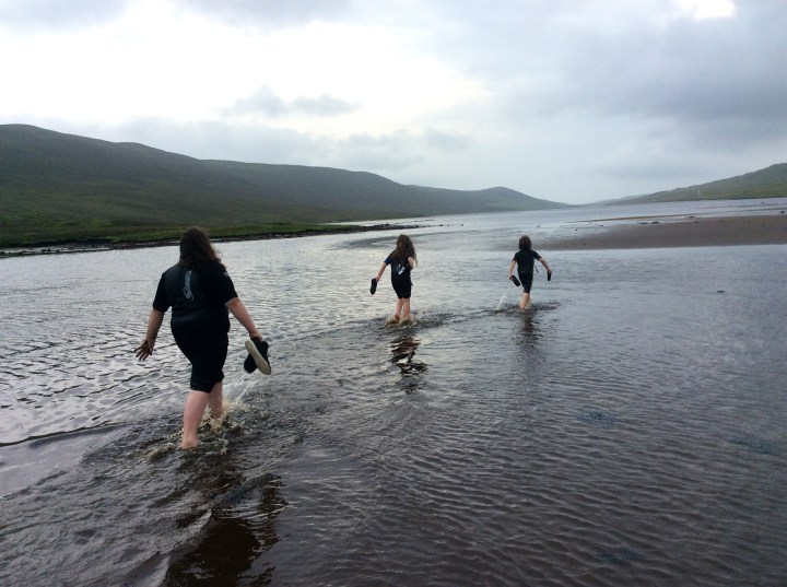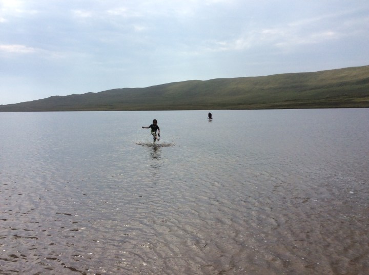 Today I promised to take the kids to the loch. It is really shallow, especially when the tide is out.