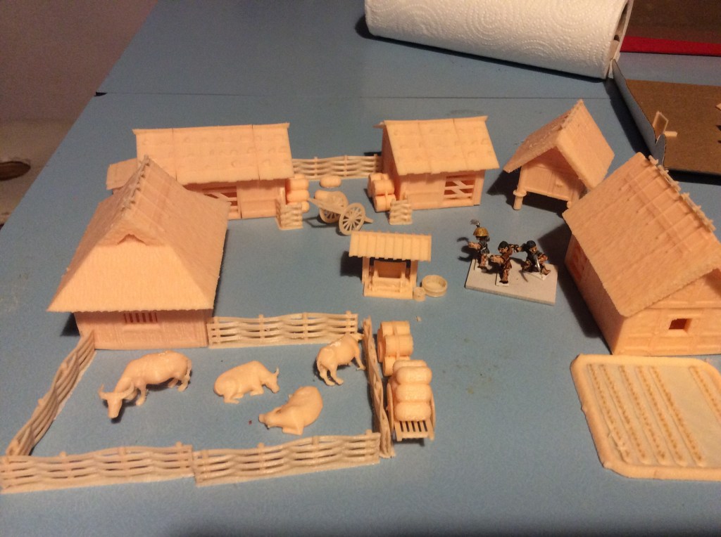 No painting tonight, but some more printing done. Because I am a plonker, I built too many buildings and not enough wooden roofs… the answer make a smaller house and a bigger house with a thatched roof. Ok. I do need to print a couple of thatch ends, but I had the main centre but done anyway…