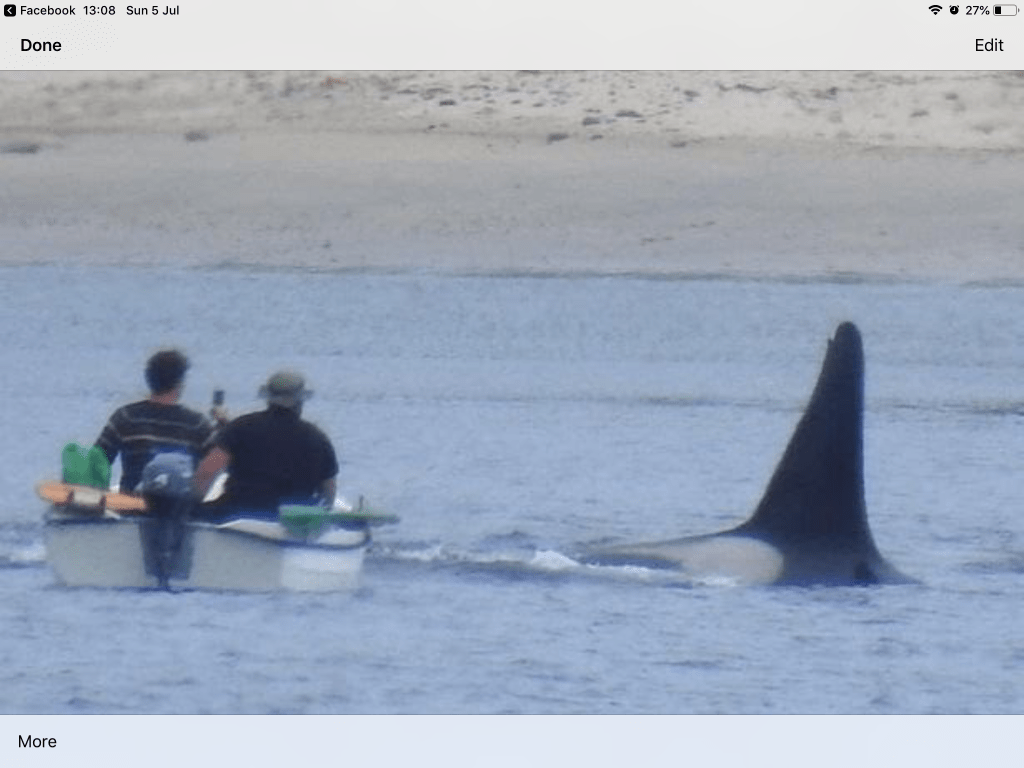 As I said in yesterday’s post, we have been visited by large pods of orca. This is someone my wife knows who had a close encounter…