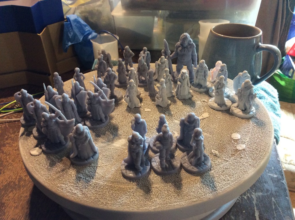 Ok, first off I think I need to pull back a bit on the resin as tonight I realised that I have pretty much run out, my last print, drained the vat dry, which was not clever. I forgot to check before going out so now I have a pile of house roofs and only one house to put it on. I have, however,got a cunning plan. I will use the broken roof and semi printed buildings to make a burning village… well I think that is what I am up to with it.