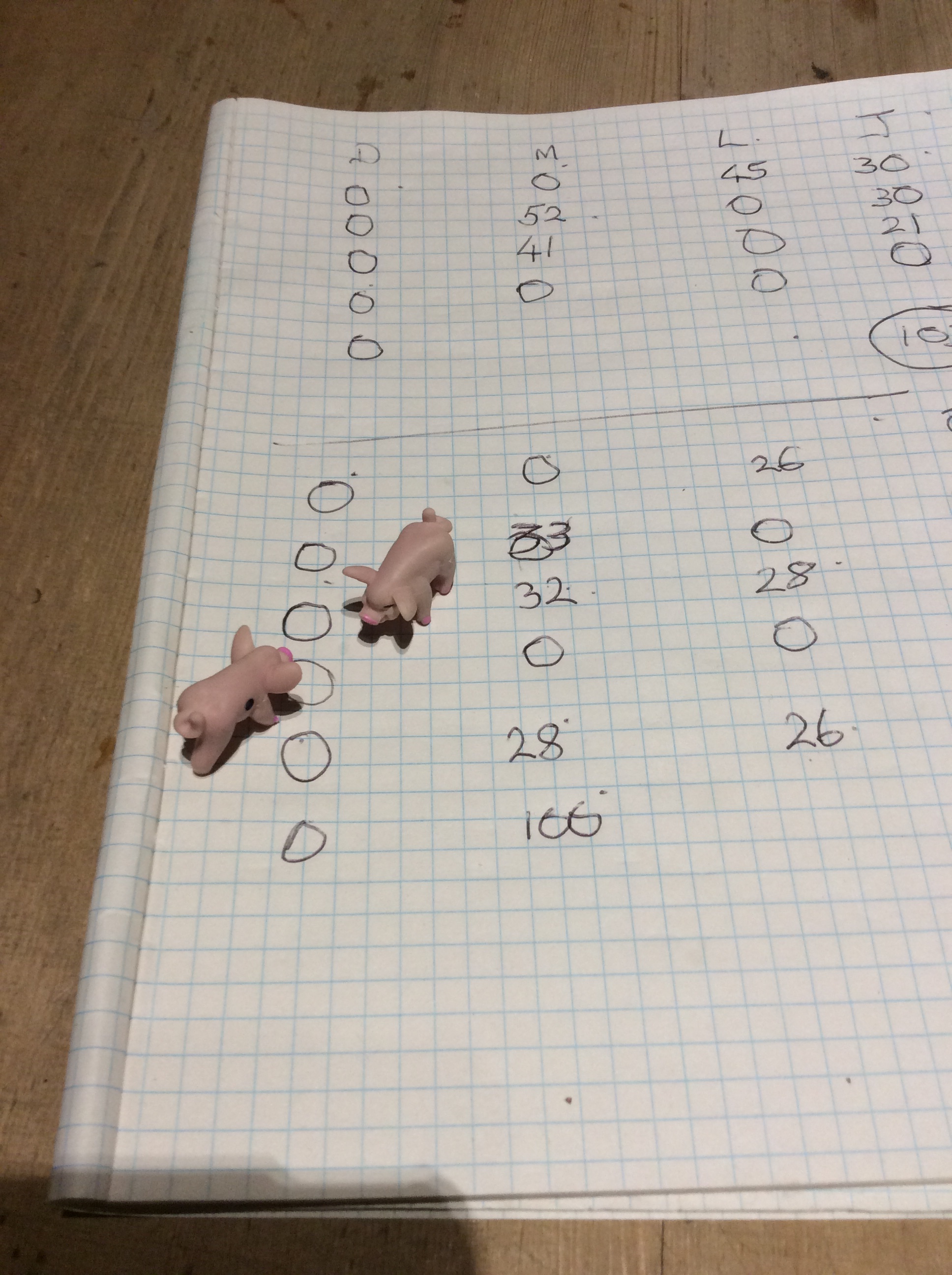 Love that game! I was introduced to it in the early 90’s by an older cousin’s boyfriend. He was from england and us youngsters were enthralled with him because of his accent. So when he showed us Pass the Pigs we thought it was the best thing ever.