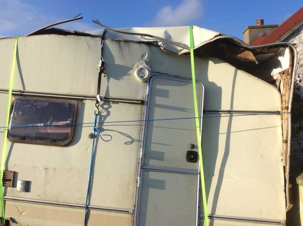 Today we decided it was time to do something about the local landmark of our rather knackered caravan.