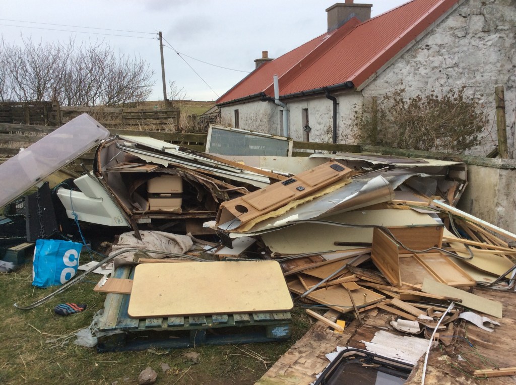 Well we were going to cut it up last year then the starlings got in and made their nests in it, so we couldn’t, then Lockdown came, then we didn’t have a car to pull the trailer…all in all the winter totally buggered it… well okay buggered it more is a better way to describe it…the last big wind caused this side to completely collapse.
