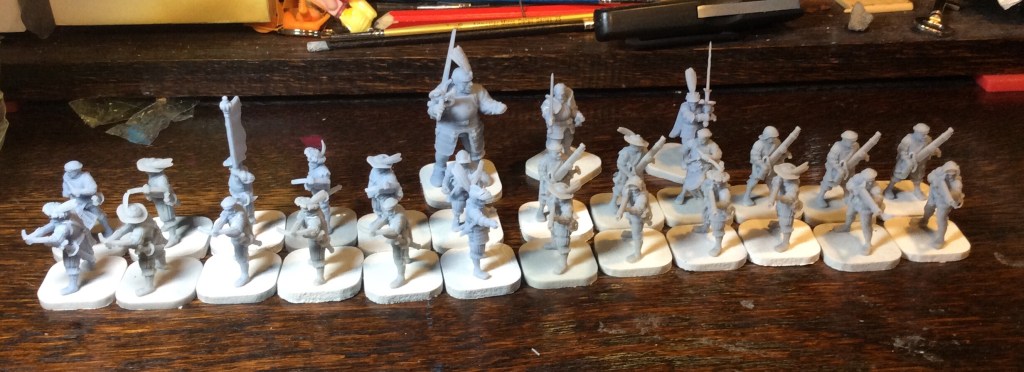 Today I set away to print the last four arquebusiers… I sliced them and added them to the printer and set it away. I did four and Lo and behold it printed two! So after a bit of swearing I relevelled the print plate, remembering point six this time).