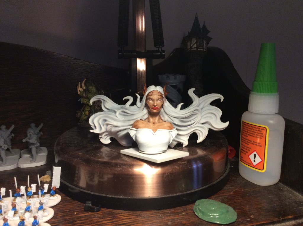 I am not sure about the flesh tones, it cannot really be seen here, but it is a bit mottled. I will carry on with it tomorrow. Next up is The hair I think. It will be a light tan, as opposed to Galadriel’s colour in the Lord of the Rings films. I am thinking a kind of green colour for the dress.