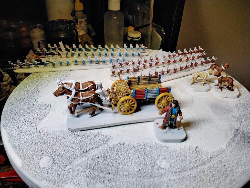 Hopefully tomorrow I will get the cart and horses finished, not to mention the other things in the photo.
