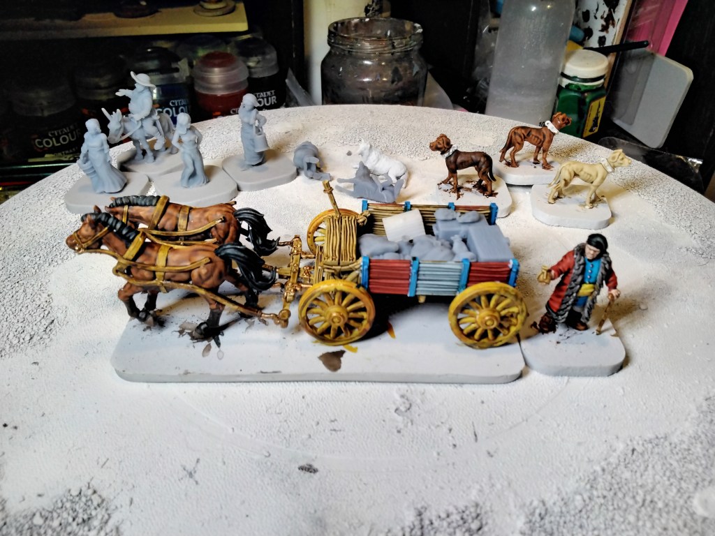 Well this evening I actually managed to paint some things. First off the cart is just about finished…