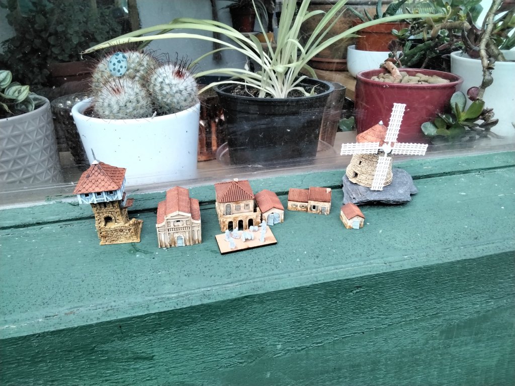 So,in the end, I got nothing done today at all, apart from glueing the elephants to their painting sticks. I still have more sitting in the shed that need curing. I didmanage to photograph the Italian houses I started a while ago…