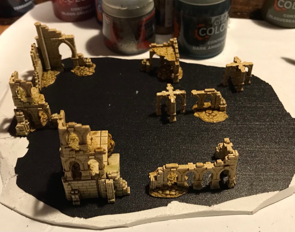 The above is some of the pieces, there will be a second smaller one too. Now to be honest, I am contemplating using some modelling compound to build things up a bit. Embed the ruins in rather than have them sitting in the top of a ‘billiard table’ base.