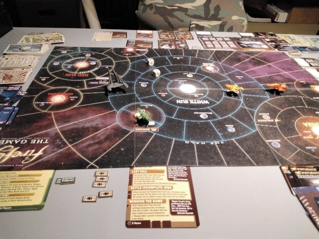 Tonight we played the Firefly boardgame. We started off with the first mission for new players. This was pretty much over in an hour… I managed to win the first game by some totally legal means…