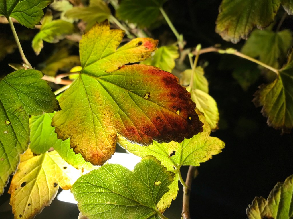 I also popped out to the shed to take something off the printer, see my next post for what it is, but on the way out I noticed this leaf in the lights….