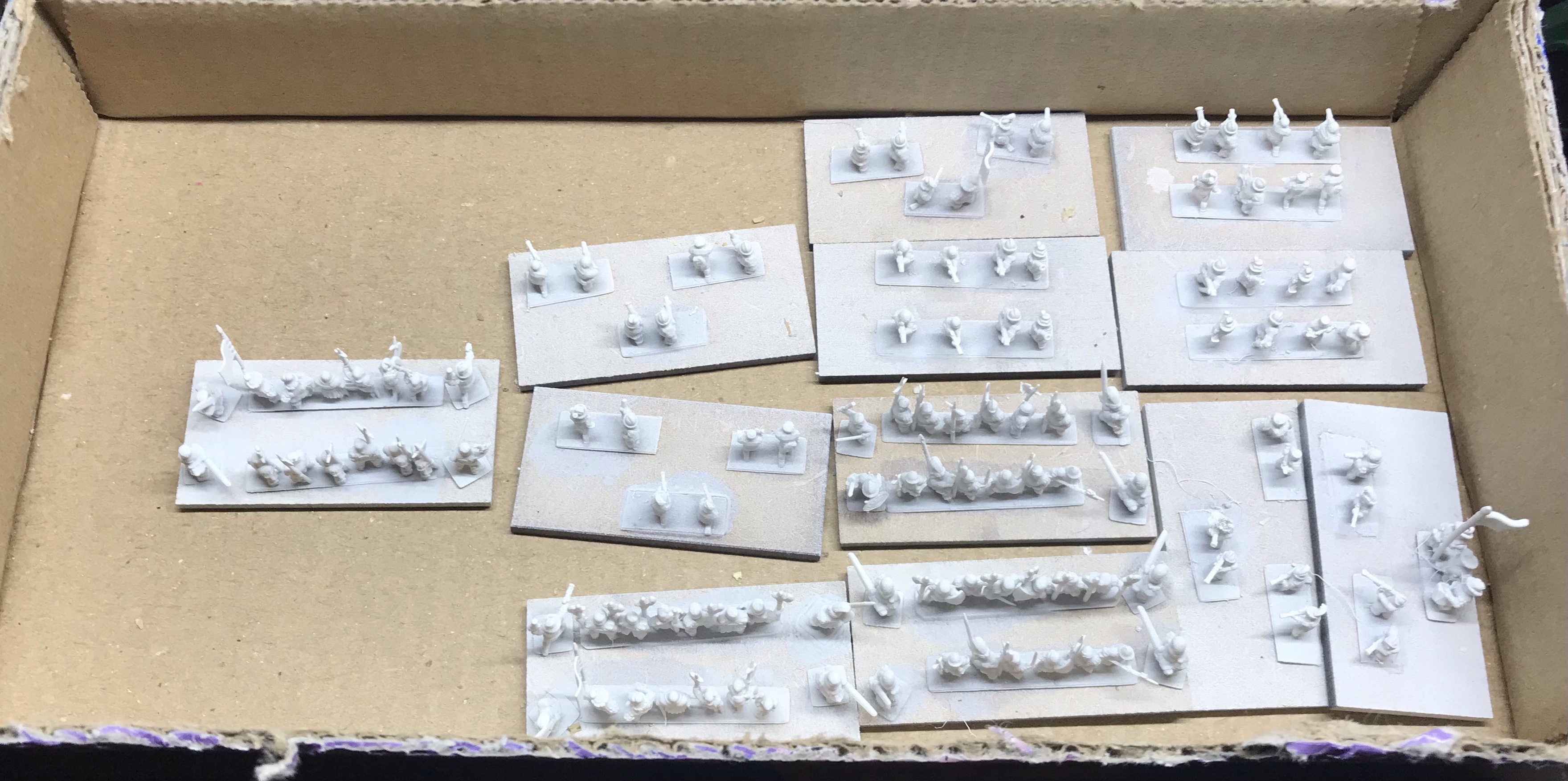 This evening I decided to spray the Ironclads bases black as well as make a start on the remaining Italian wars bases… you will be pleased to know I got this far…