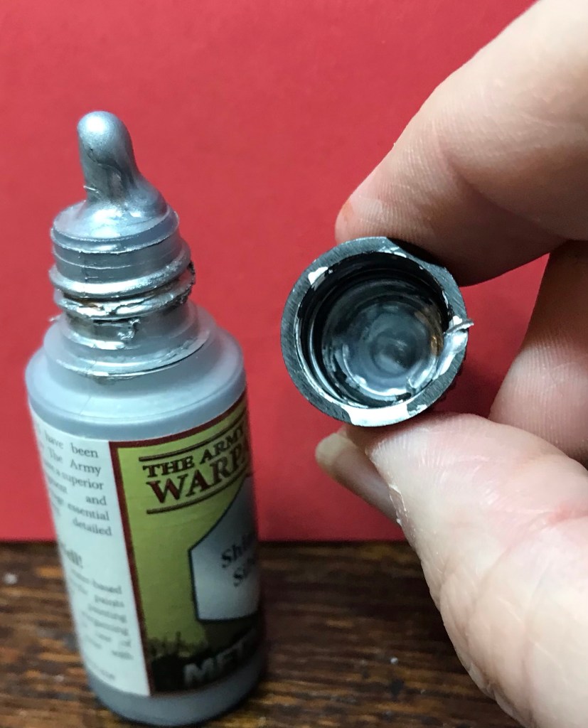 Luckily I’ve only ever bought the tins of Quickshade. (that I like but I do wish they did smaller tins, as the stuff always seems to go off before I use it all, probably my fault as I tend to just use it on a couple of mini’s at a time so probably open and closed the tins too often, rather than paint up hundreds of fig’s and then Quickshade the lot in one go!).