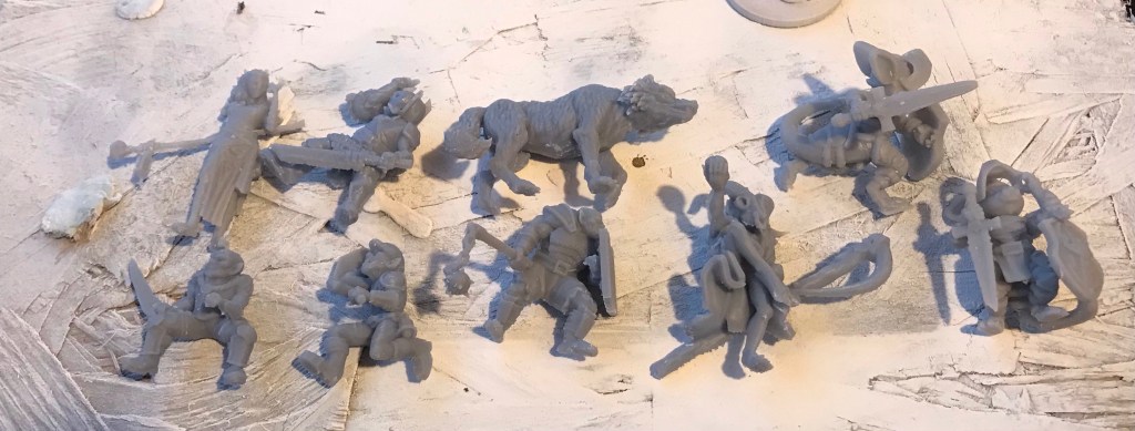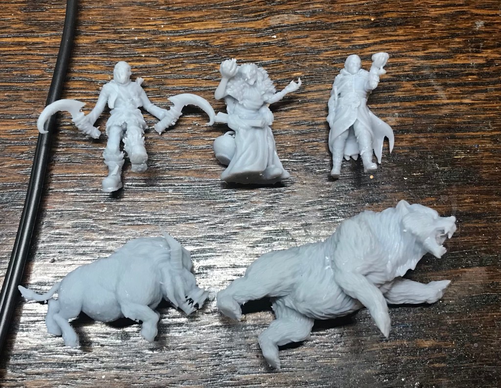 So we have a scary scarecrow, a hag with an apple, a vampire, a boar and a bear. I really like them, which is why I bought them I suppose, I might redo them and make the top three a bit bigger for Silver Bayonet. I did them in a mix of flexible and ordinary resin to try and make them a bug more durable.