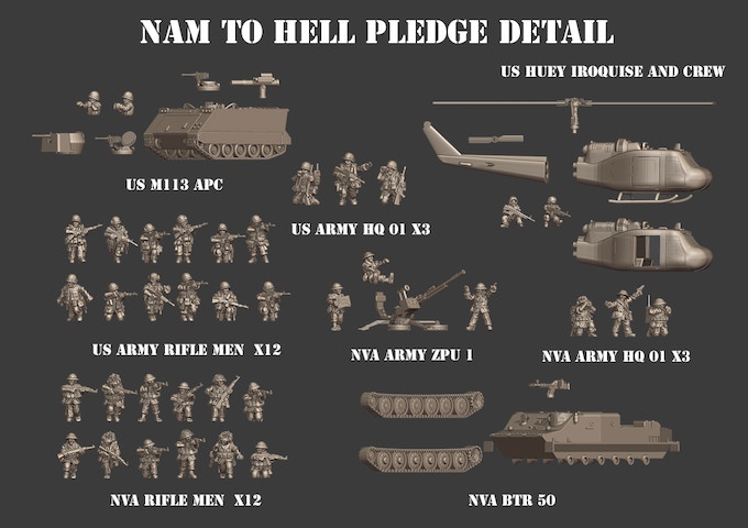 The above is the base level, there are literally loads of additions in the stretch goals. I enjoyed painting the one last night and after watching some Youtube videos including Full Metal Jacket, Platoon, HAmburger Hill and others.. I knew I was going to jump in with both feet.