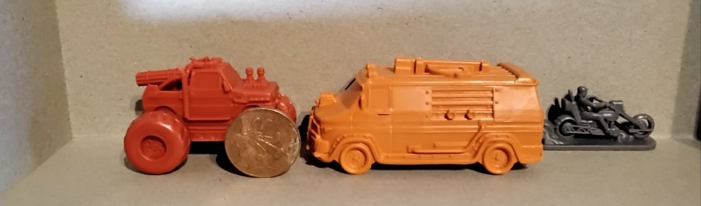 I am going to paint the vehicles as I think they will look a whole lot better, especially the black one as there are no details visible due to the colours.