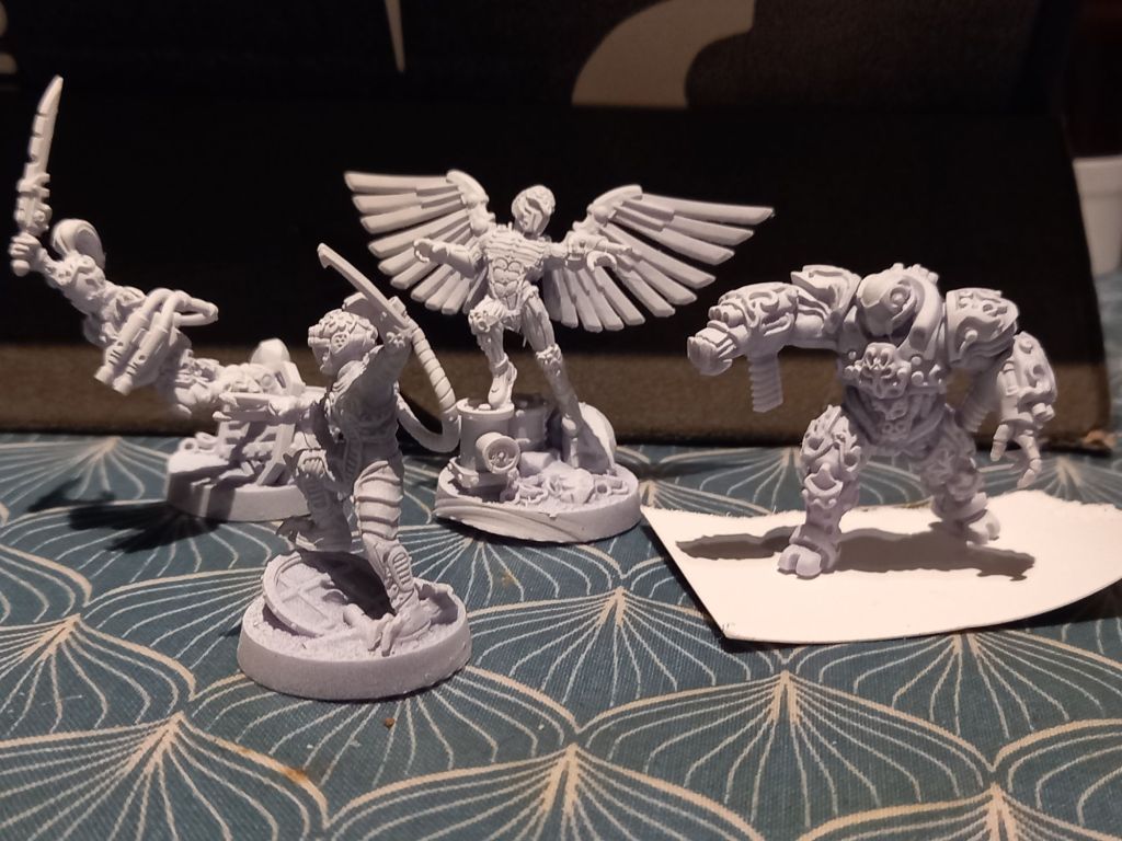Because I am a pillock I stuck three of the miniatures onto the wrong bases, it really only affects the one on the extreme left. She is leaping at an extreme angle. If you notice there is one of them on cardboard. This is because his base failed on the printer. Hopefully this is simple teething problem… however I tried a new print for my youngest and it failed.