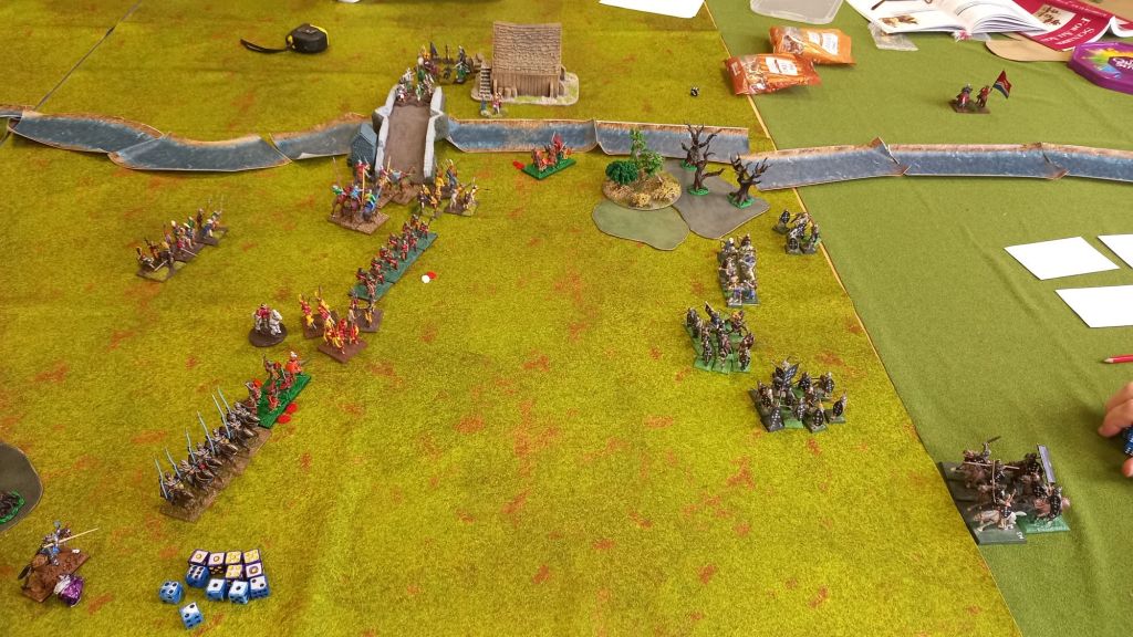 Game two was a bit more worrying, me versus three and I had to hold another bridge. I managed to totally wipe out one of the players directly opposite me, but lost both my mounted and foot men at arms, oh and my general too. Luckily one of the opposite number was actually a turncoat and helped out by destroying a lot of my opposition on the left…phew!