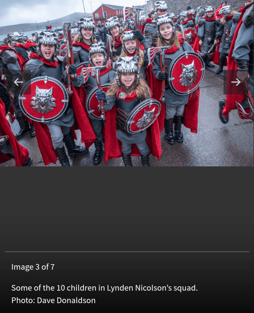 It is the Lerwick Up Helly Aa today. As usual wind and rain… Here is a pic I blagged from the internet. At least it shows off their costume nicely.