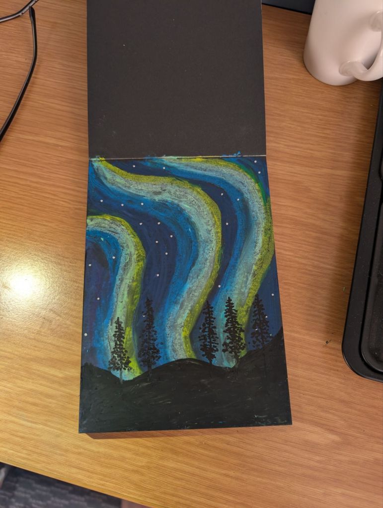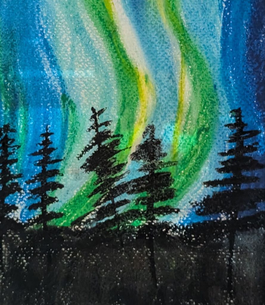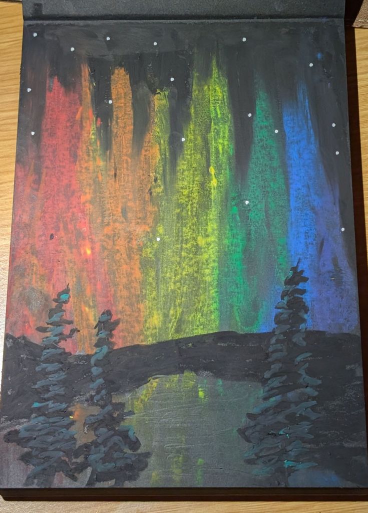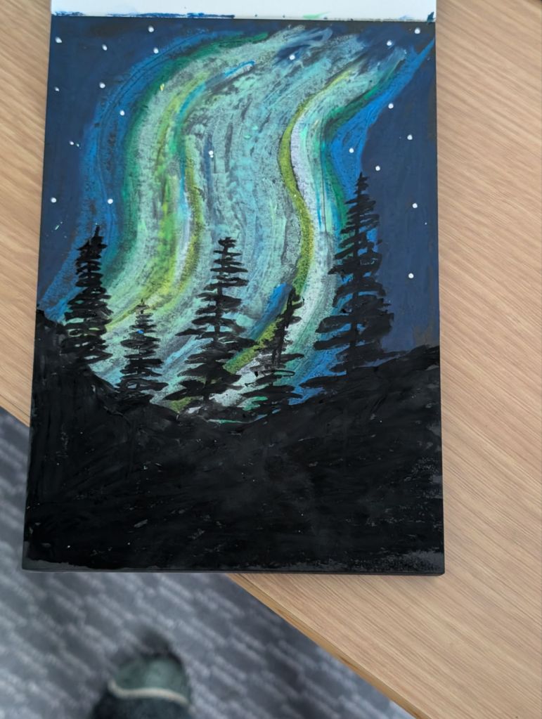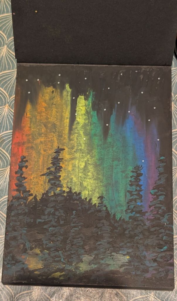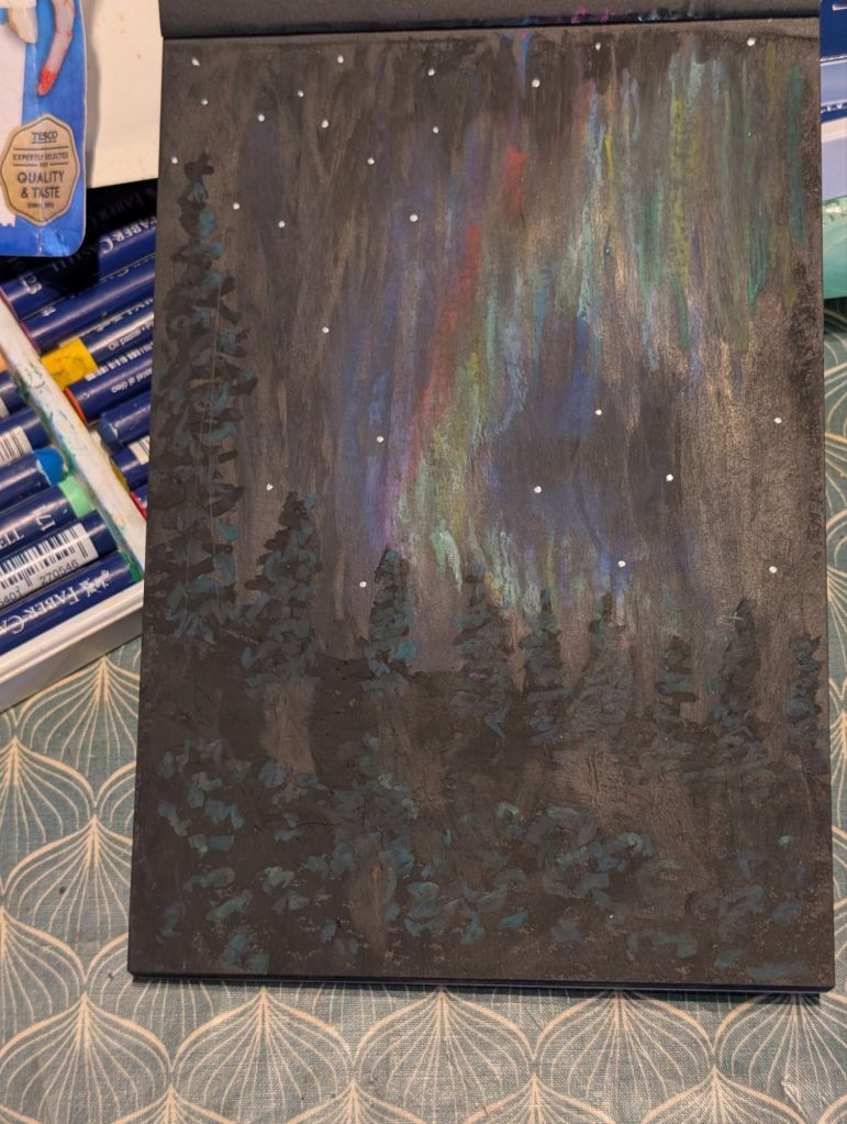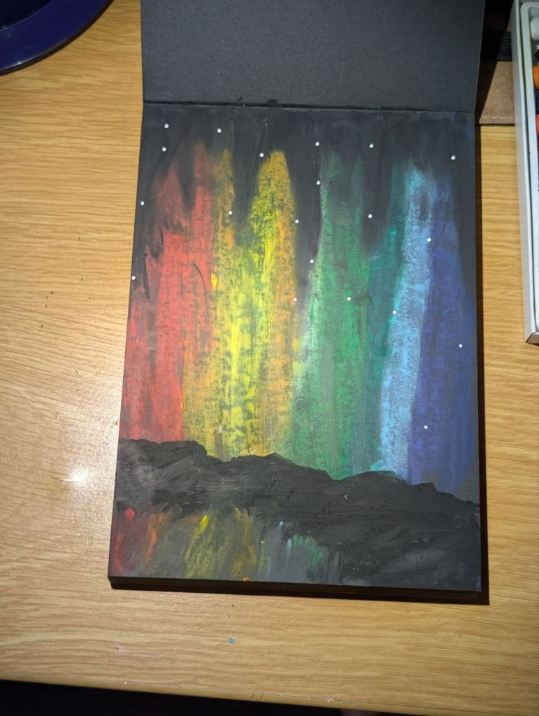So I had to go to Aberdeen for 5 nights for train the trainer training. My first thought was taking some minis and paints down, but after watching my case being loaded I am glad I didn’t. Instead I took my oil pastels and tried to do something every night… Since Monday night I have achieved my goal…