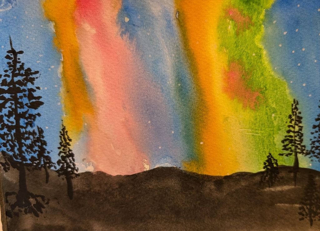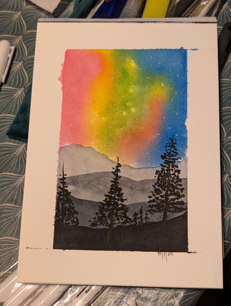 Wellllll I decided that I needed to be creative and as I said I was going to paint another Sky with more purple and green in it…. Well I totally failed… Talk about set in my ways lol…