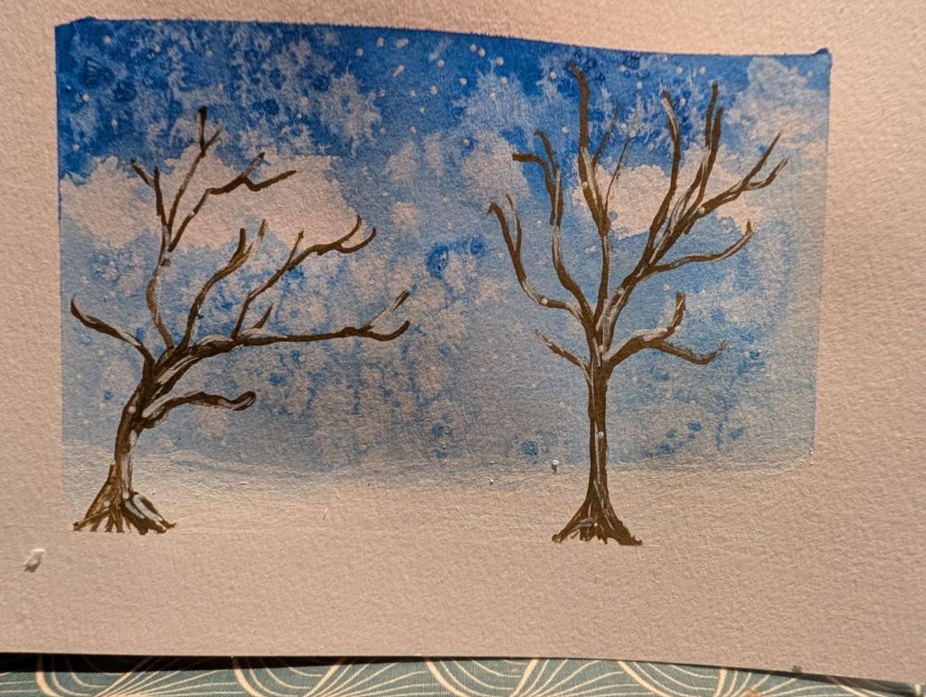As we are in the midst of a snowy spell I decided to have a go at a bit of a snowy scene…