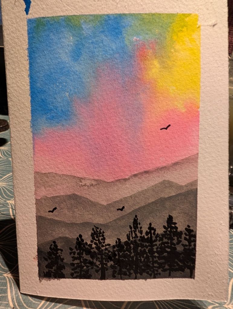 Well I decided to make a little card for a lovely ex colleague who got me a new job card and sent me some lovely things when I was ill… Out came the water colours…