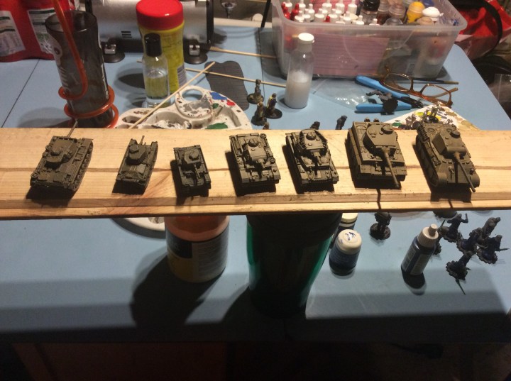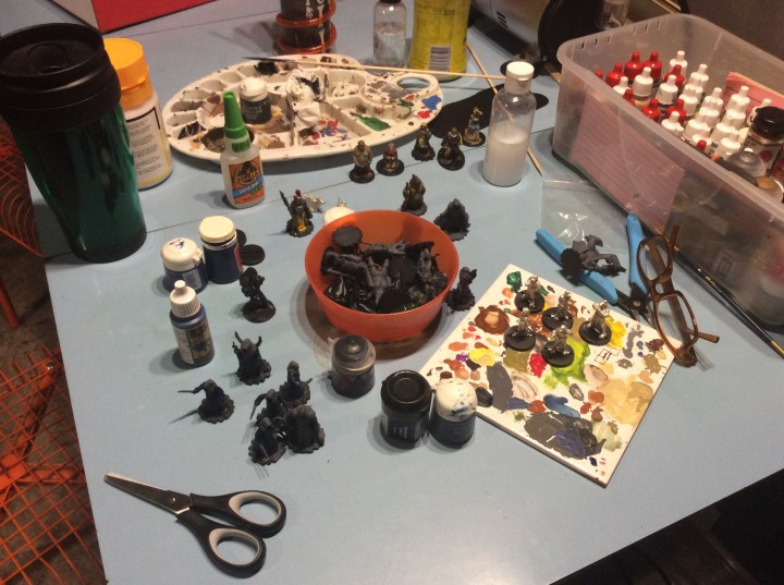 I also managed to spray all of the tokens tonight. Note to self … wear a mask when spraying lots! I found 4 different coloured sprays to make them different.