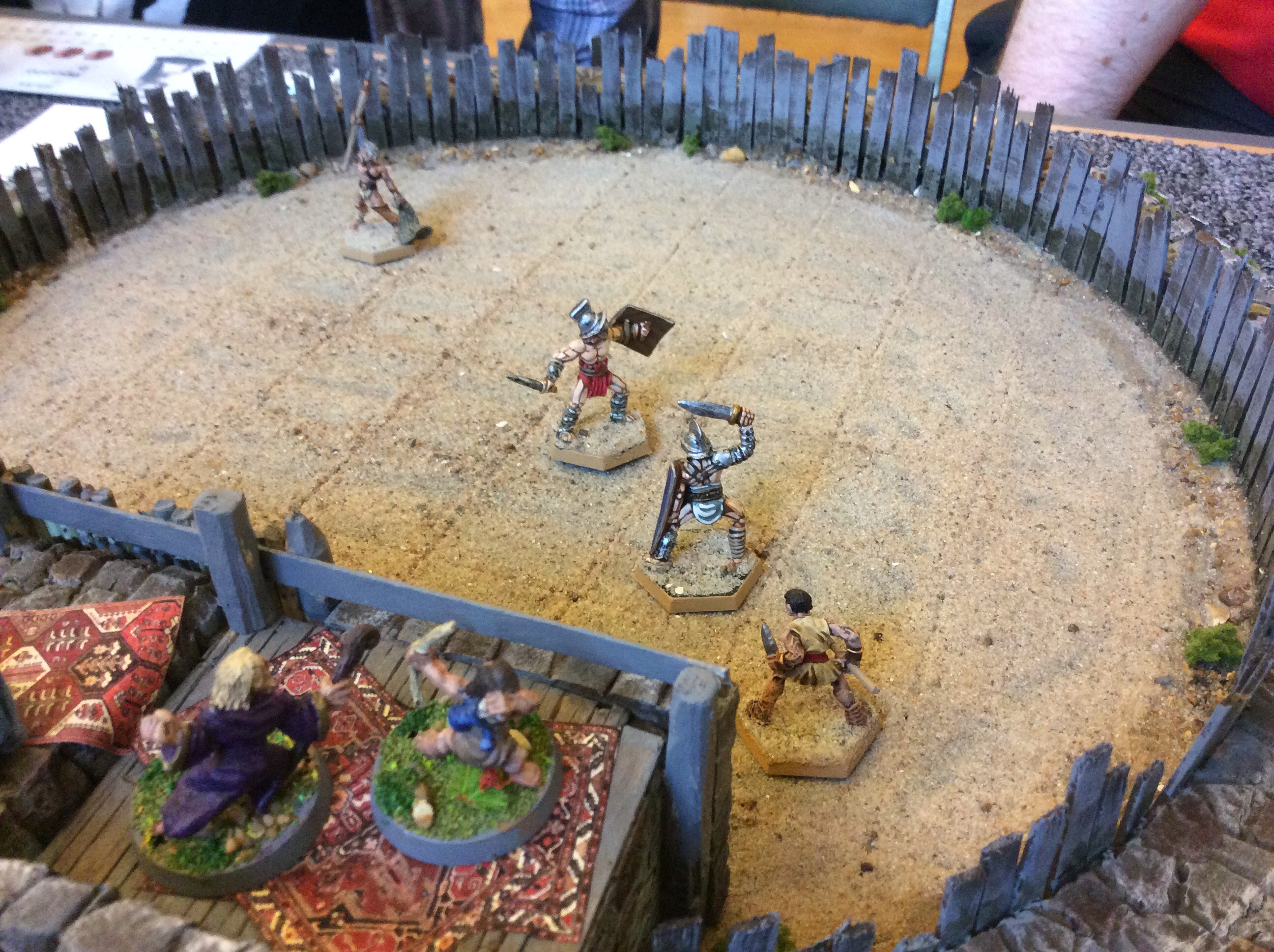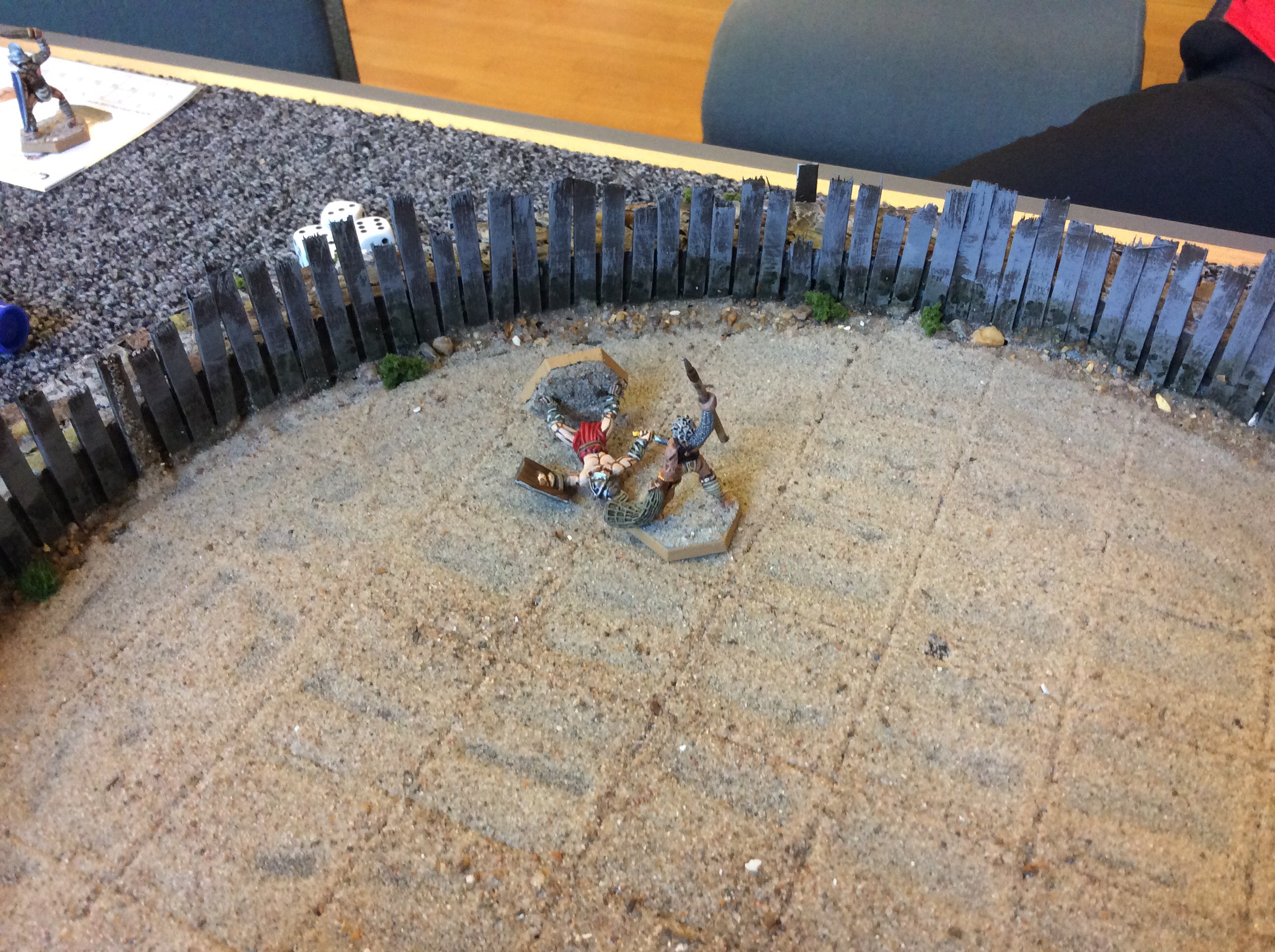 I am going to have a fiddle about and see what other types I can make. A laquerius should be easy enough spear and a lasso instead of a net and trident. A bestiarius or venatore should be easy enough to too. And as for a poor noxxi – some poor dude with just a sword, if he was lucky fighting one of the types above. I might be able to do an eques… all I need is a horse and an ancient rider. Add gladiator arms an helmet and voila!