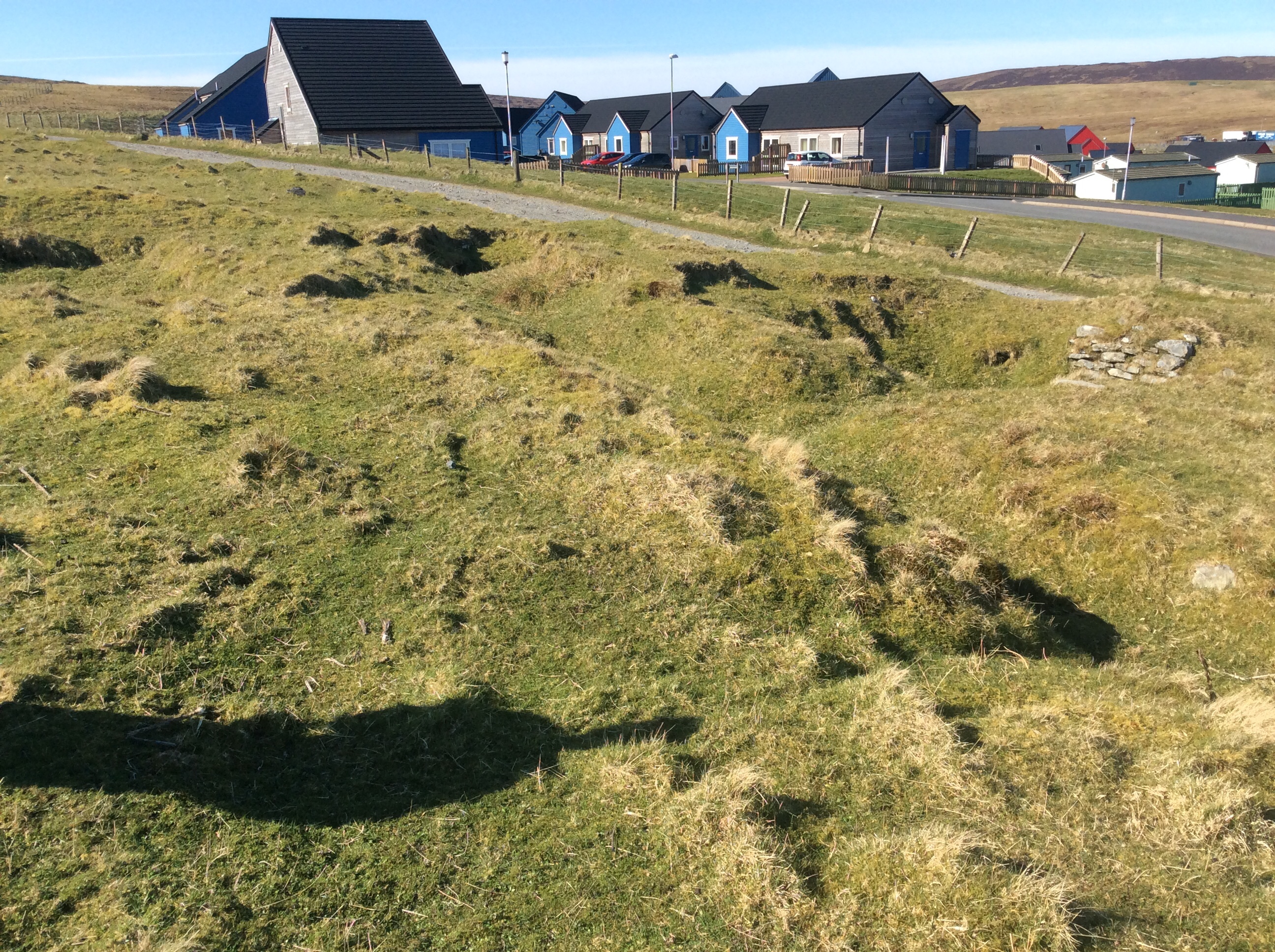 We just looked at the mid area defences and not the outer ring, the inner ring has pretty much gone due to houses etc. This lot are also up for destruction as Lerwick expands up onto Staney Hill.