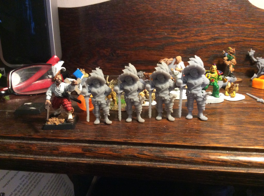 For some reason I printed the same lot off again so now have two of the witchhunter etc. The zweihander snapped on the Lanschnect …again. Tomorrow if the weather allows then I am just going to print the Mage and see if I can add in some other supports.